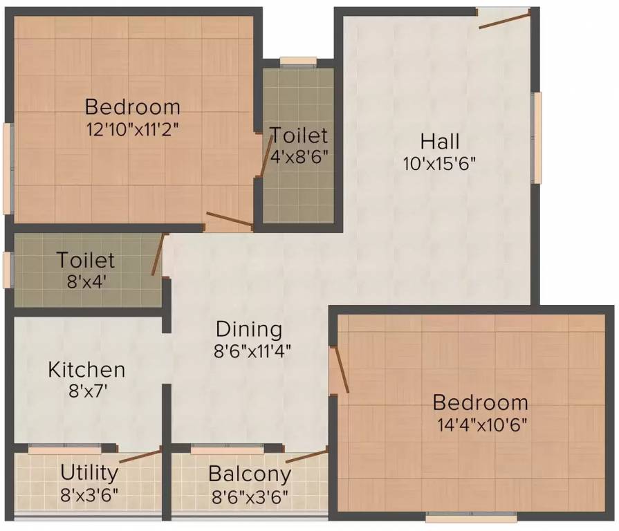 2BHK+2T (1,000 sq ft)