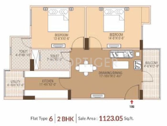 2BHK+2T (1,123 sq ft)