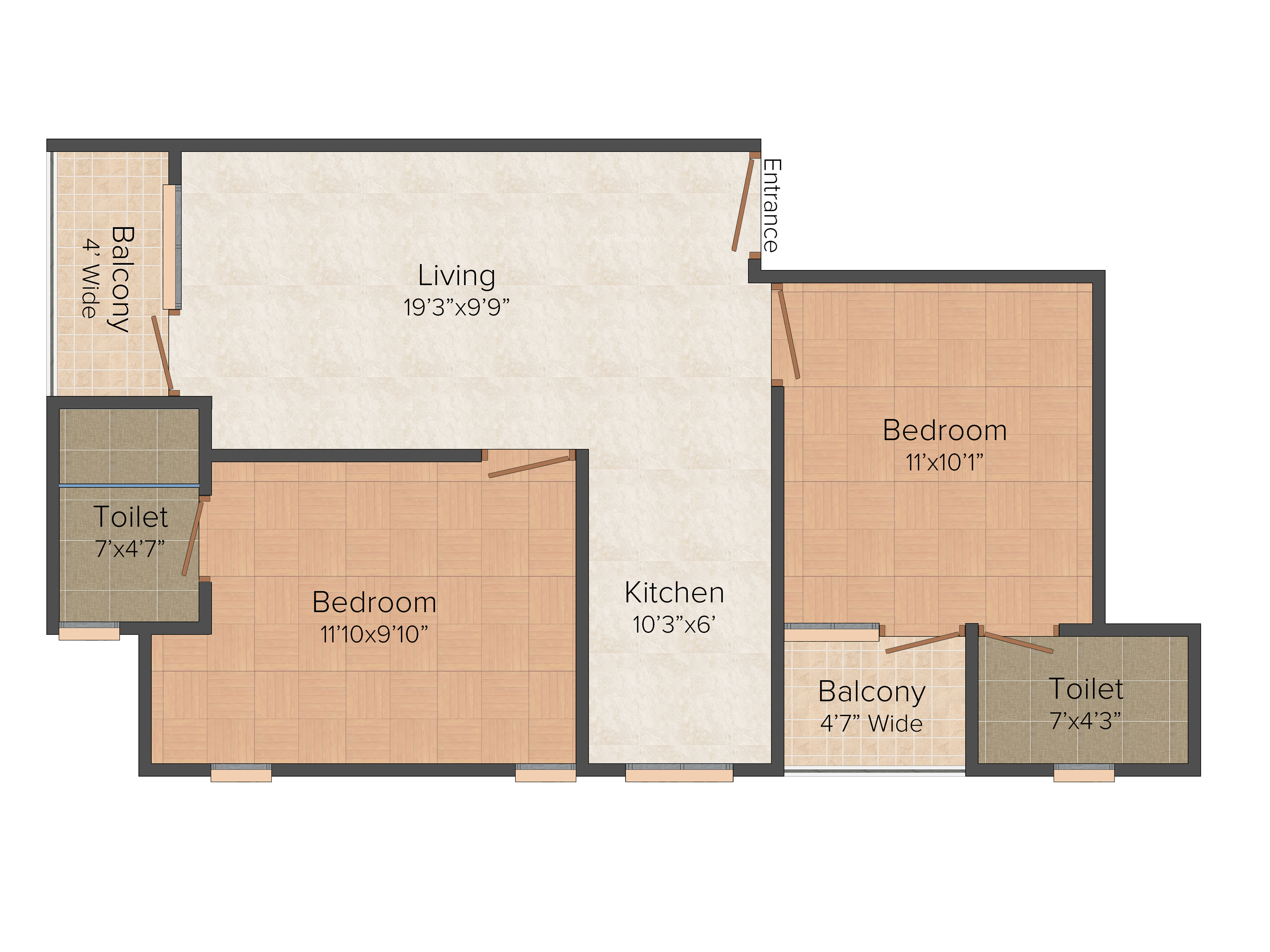 1, 2 BHK