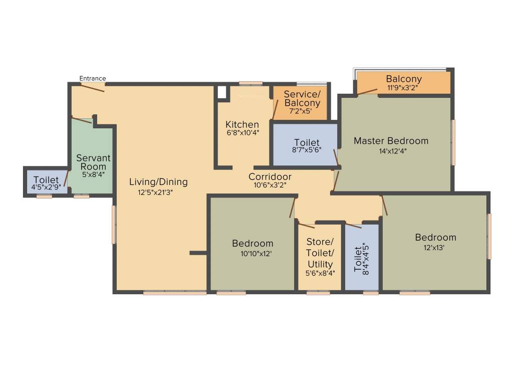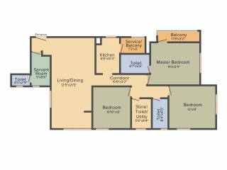 3BHK+3T (1,655 sq ft) + Servant Room