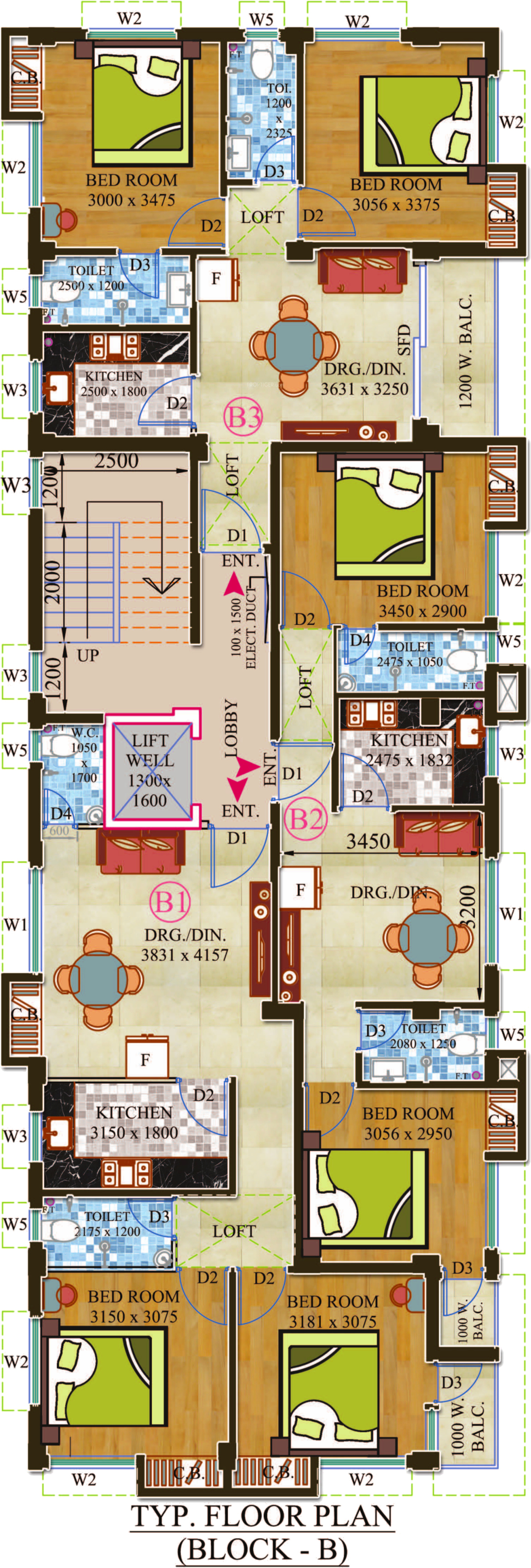 3BHK+3T (1,098 sq ft)