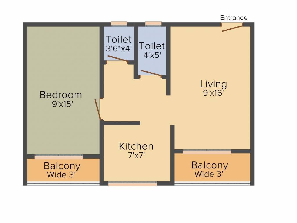 1BHK+1T (590 sq ft)