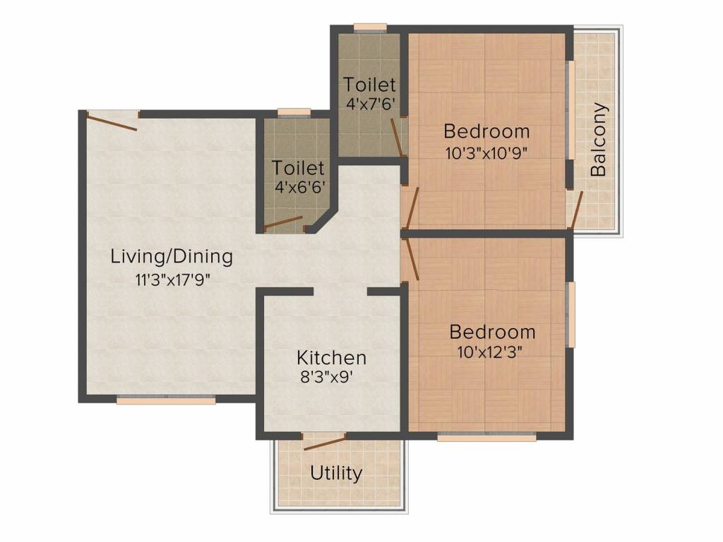 2BHK+1T (900 sq ft)