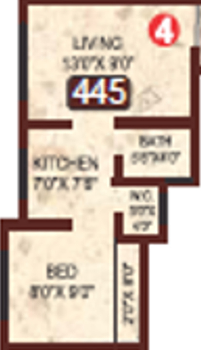 1BHK+1T (445 sq ft)