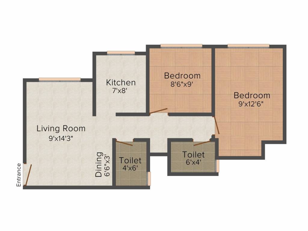 2BHK+1T (800 sq ft)