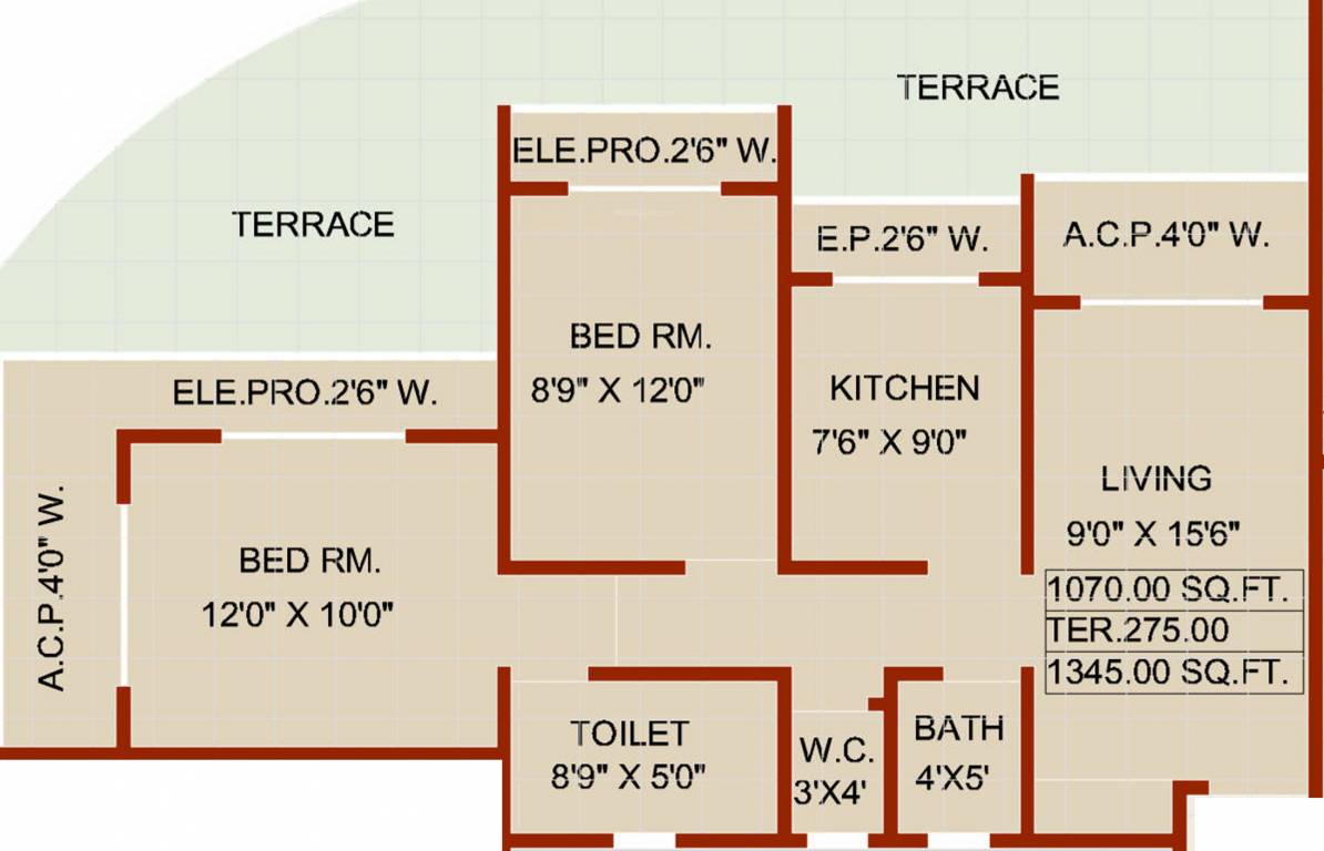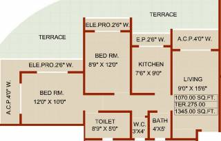 2BHK+2T (1,345 sq ft)