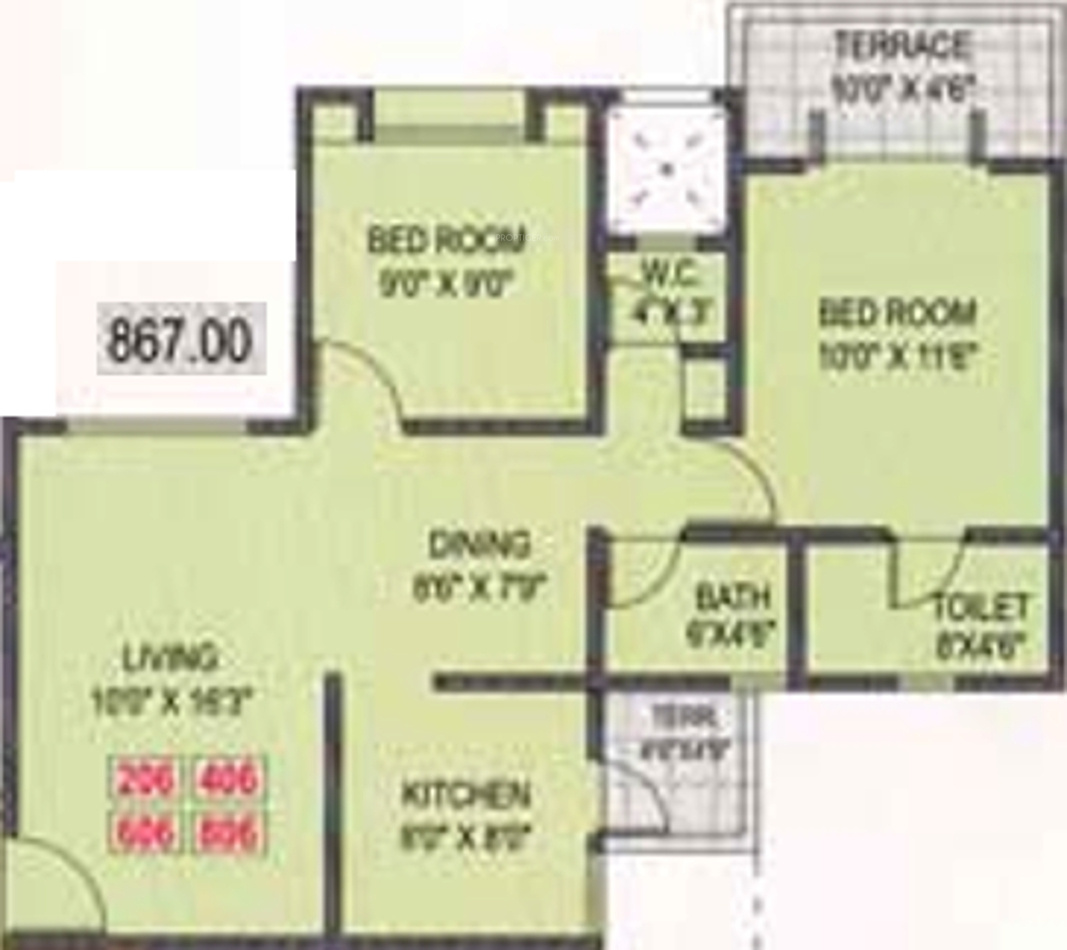 ![]() | 867 sq ft (2BHK+2T) | - |