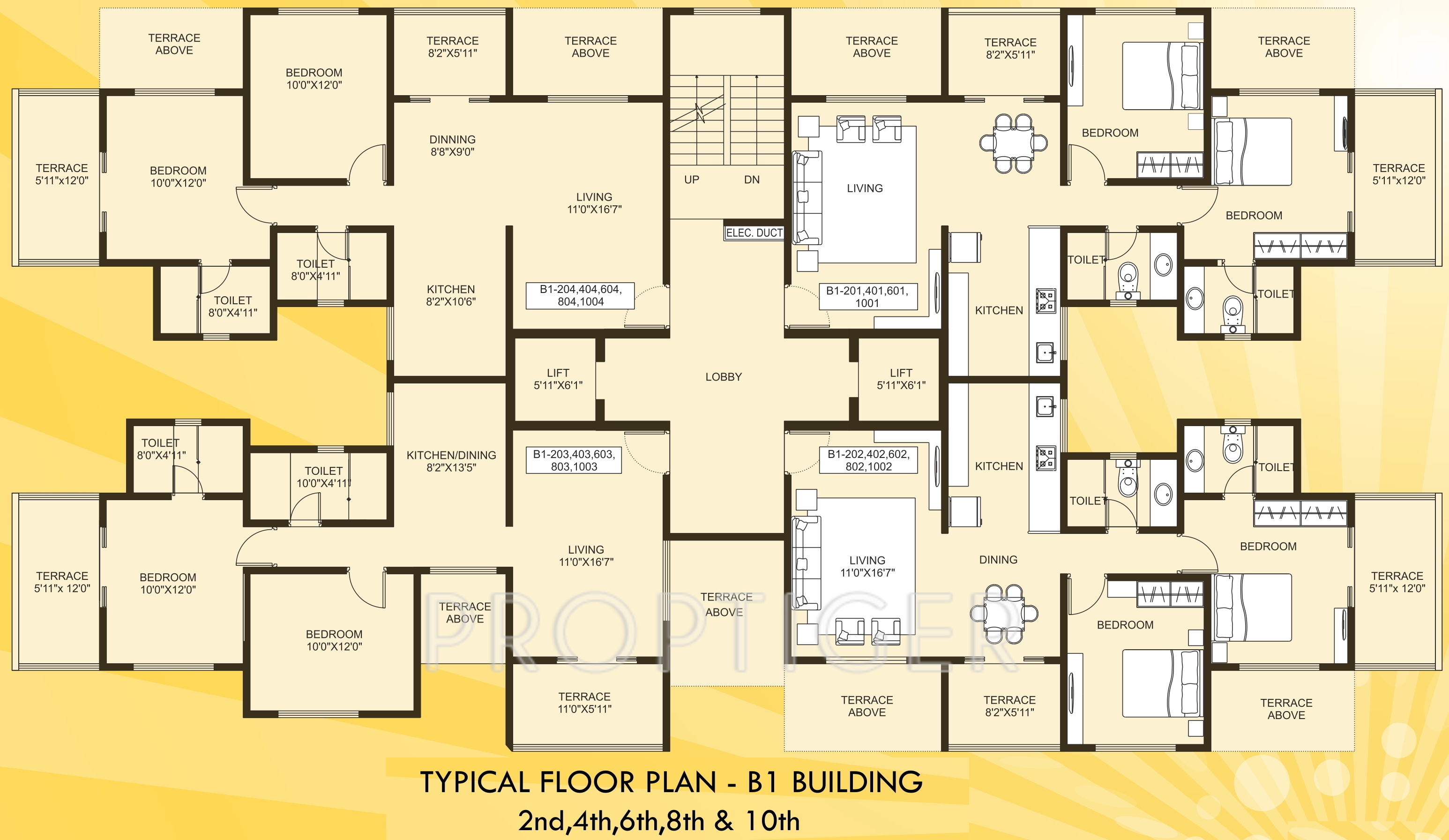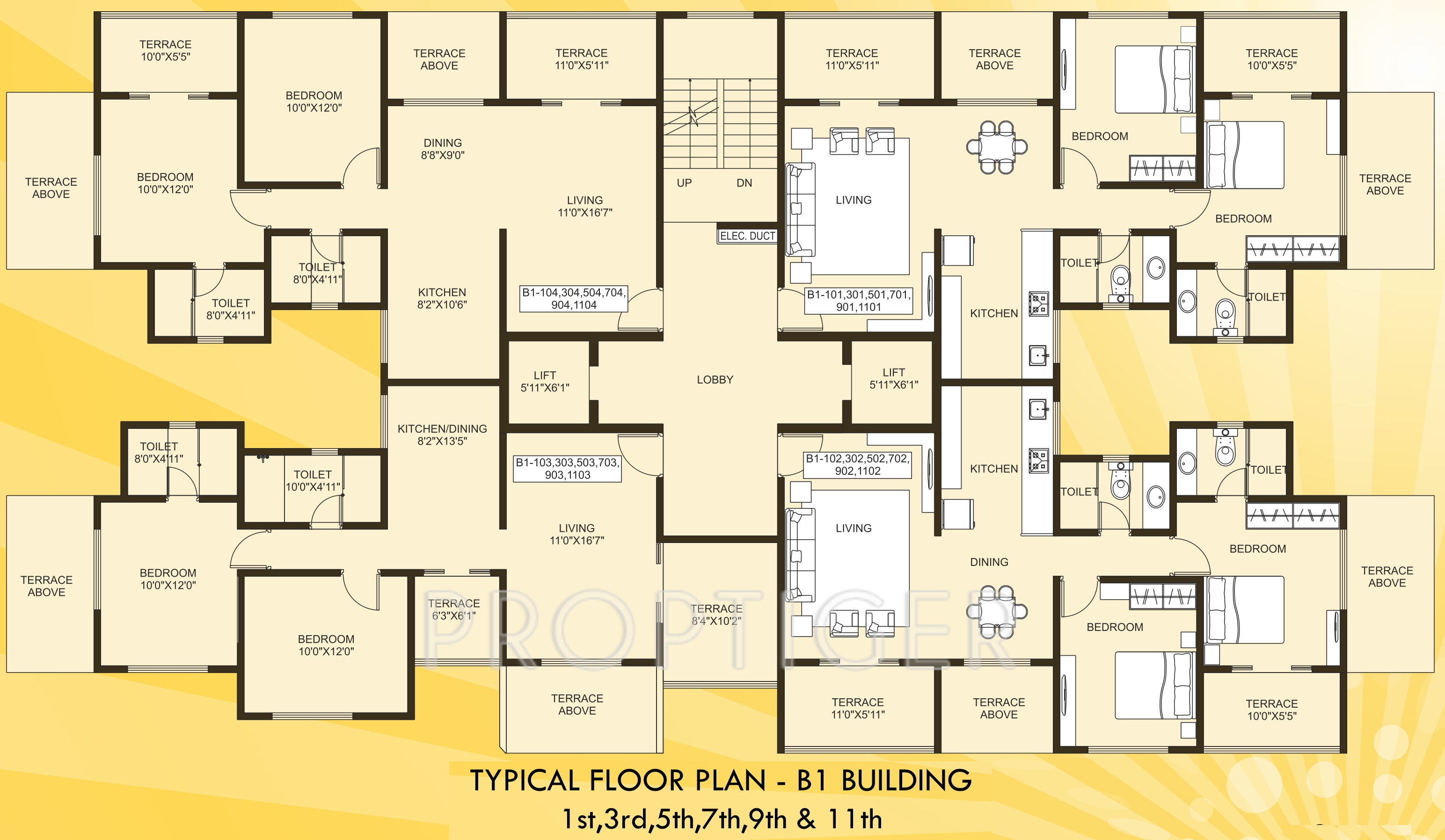3BHK+3T (964.98 sq ft)