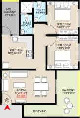 2BHK+2T (873 sq ft)