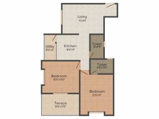 2BHK+2T (955 sq ft)