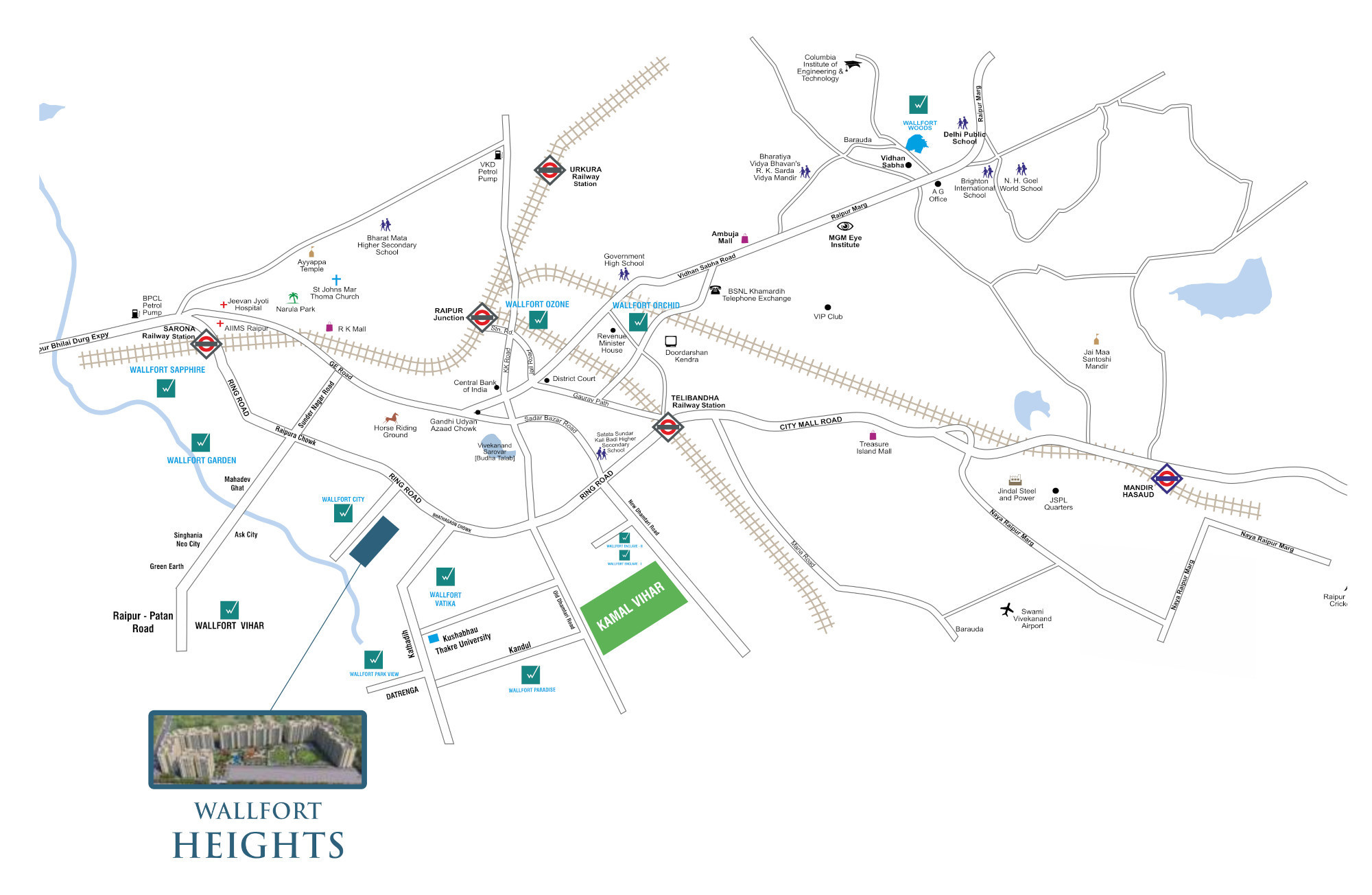 Heights Phase 2 G H I J K L is a premium housing project launched by Wallfort Group in Bhatagaon, Raipur. These 2, 3, 4 BHK Apartment in Raipur South are available from 1150 sqft to 2260 sqft. Among the many luxurious amenities that the project hosts are Paved Compound, Internal Roads & Footpaths, Gymnasium, Skating Rink, Multipurpose Hall etc. The Apartment will be available for sale from Rs 46.00 lacs to Rs 90.40 lacs.