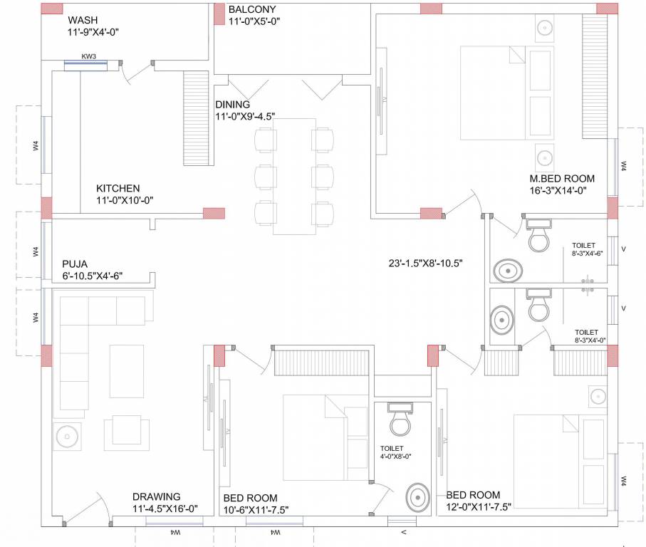3BHK+3T (1,934 sq ft)