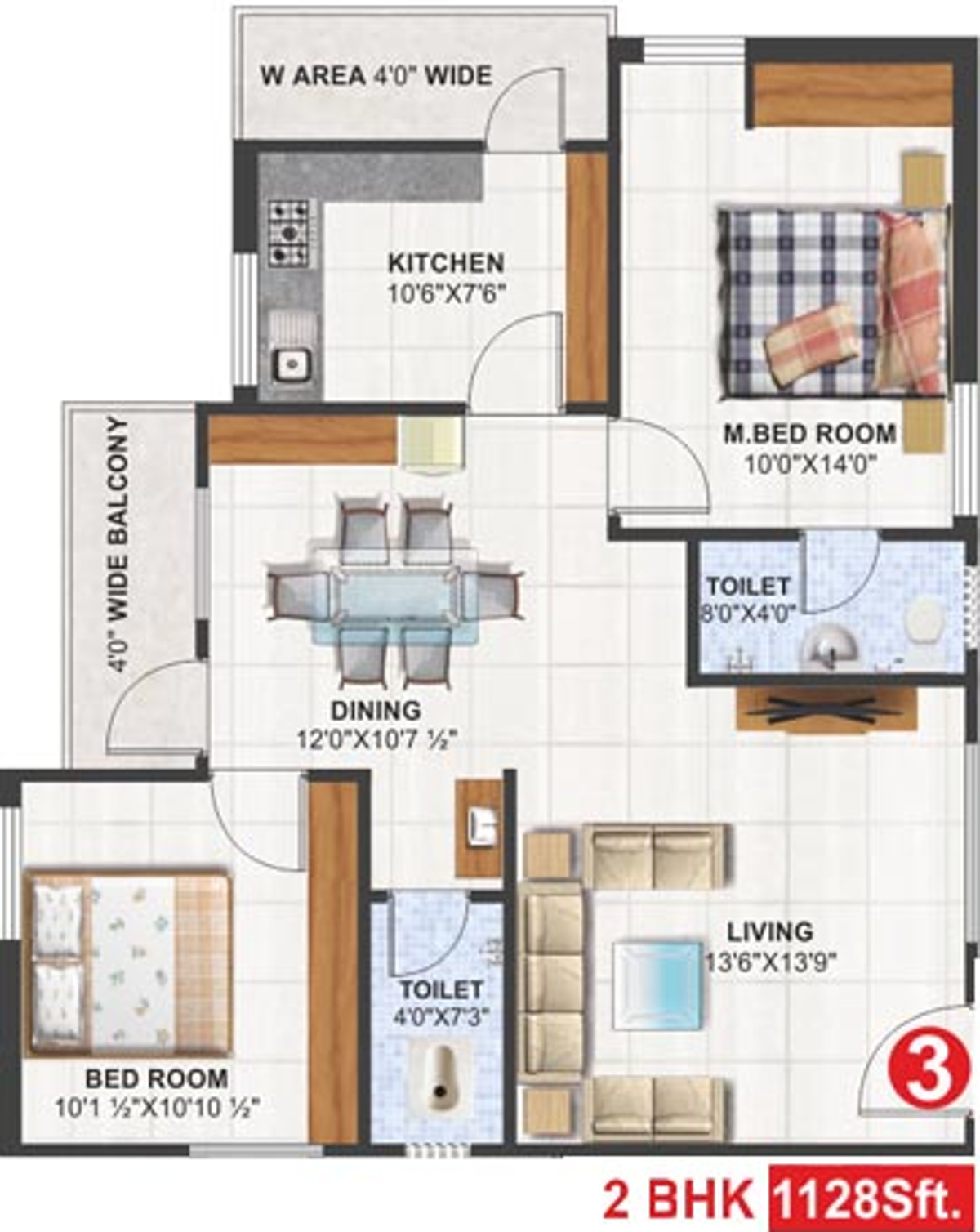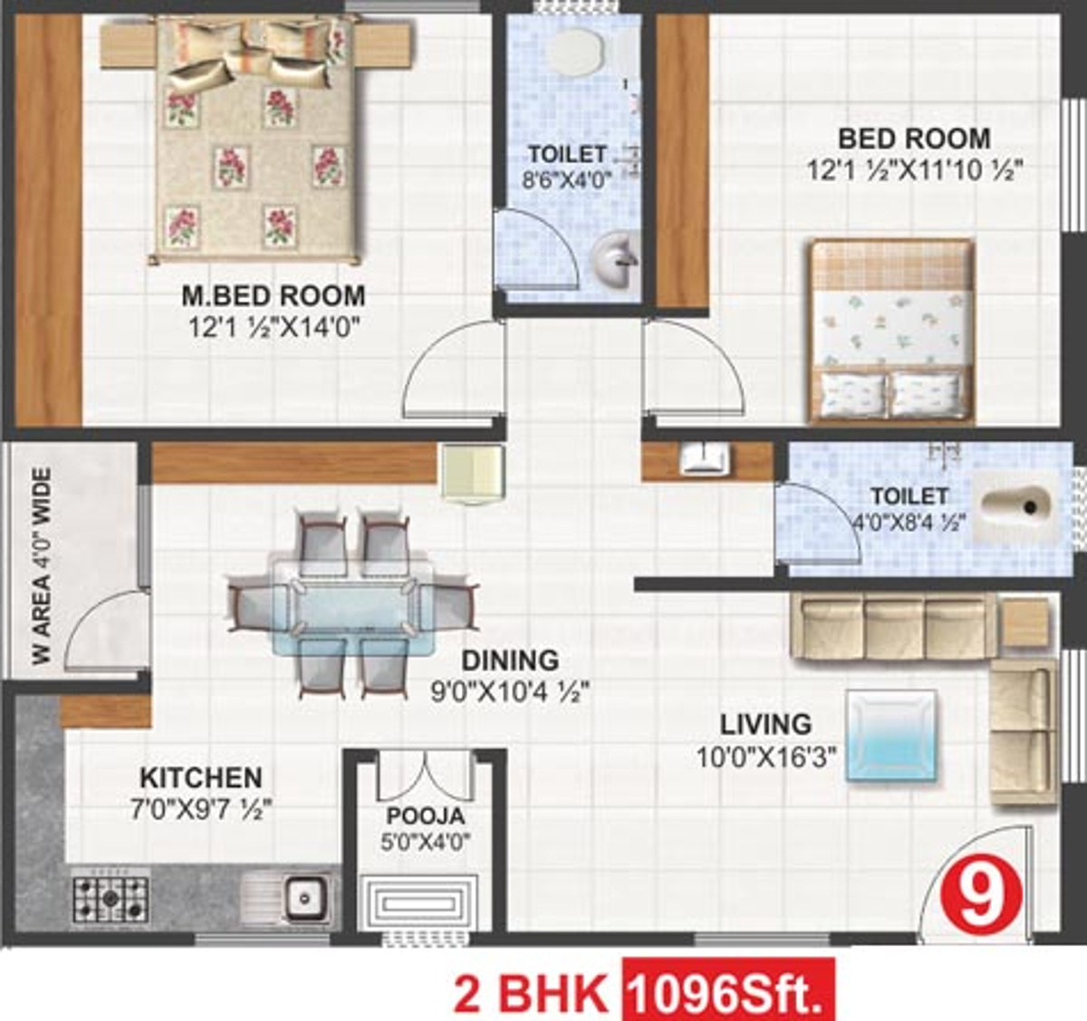 ![]() | 1043 sq ft (2BHK+2T + Pooja Room) | - |