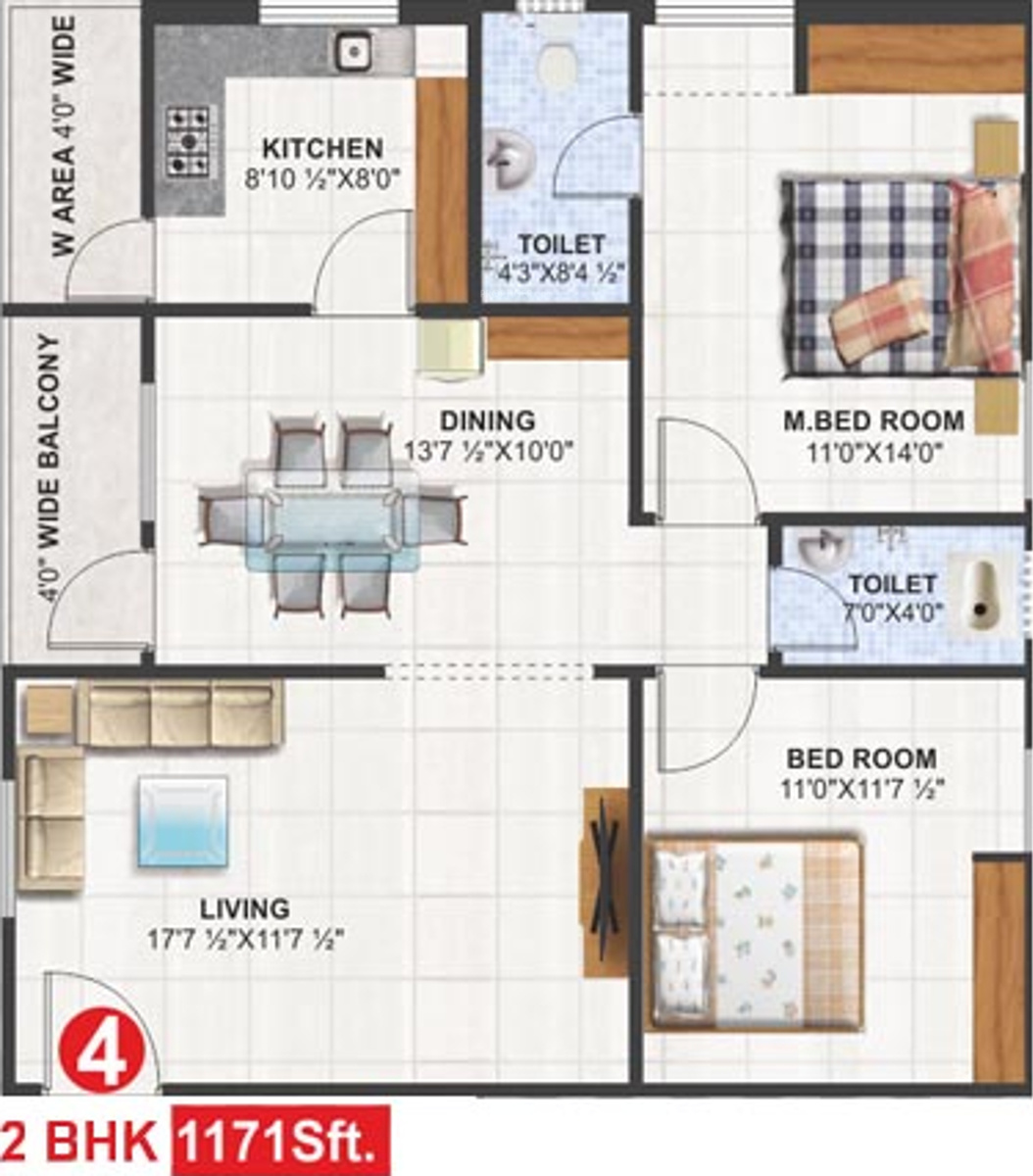![]() | 1171 sq ft (2BHK+2T) | - |